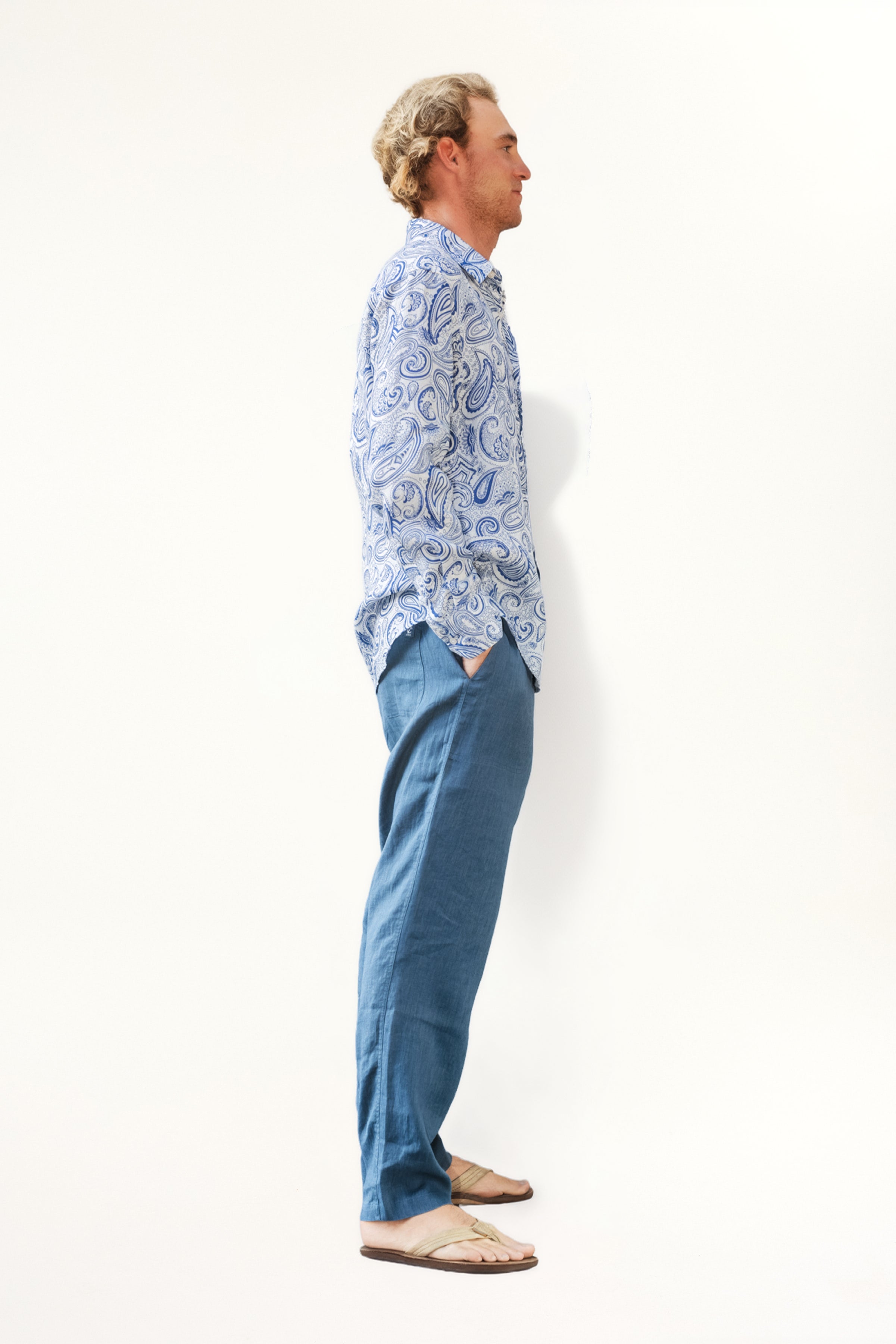 Jeremy Linen Shirt - Ultramarine Paisley