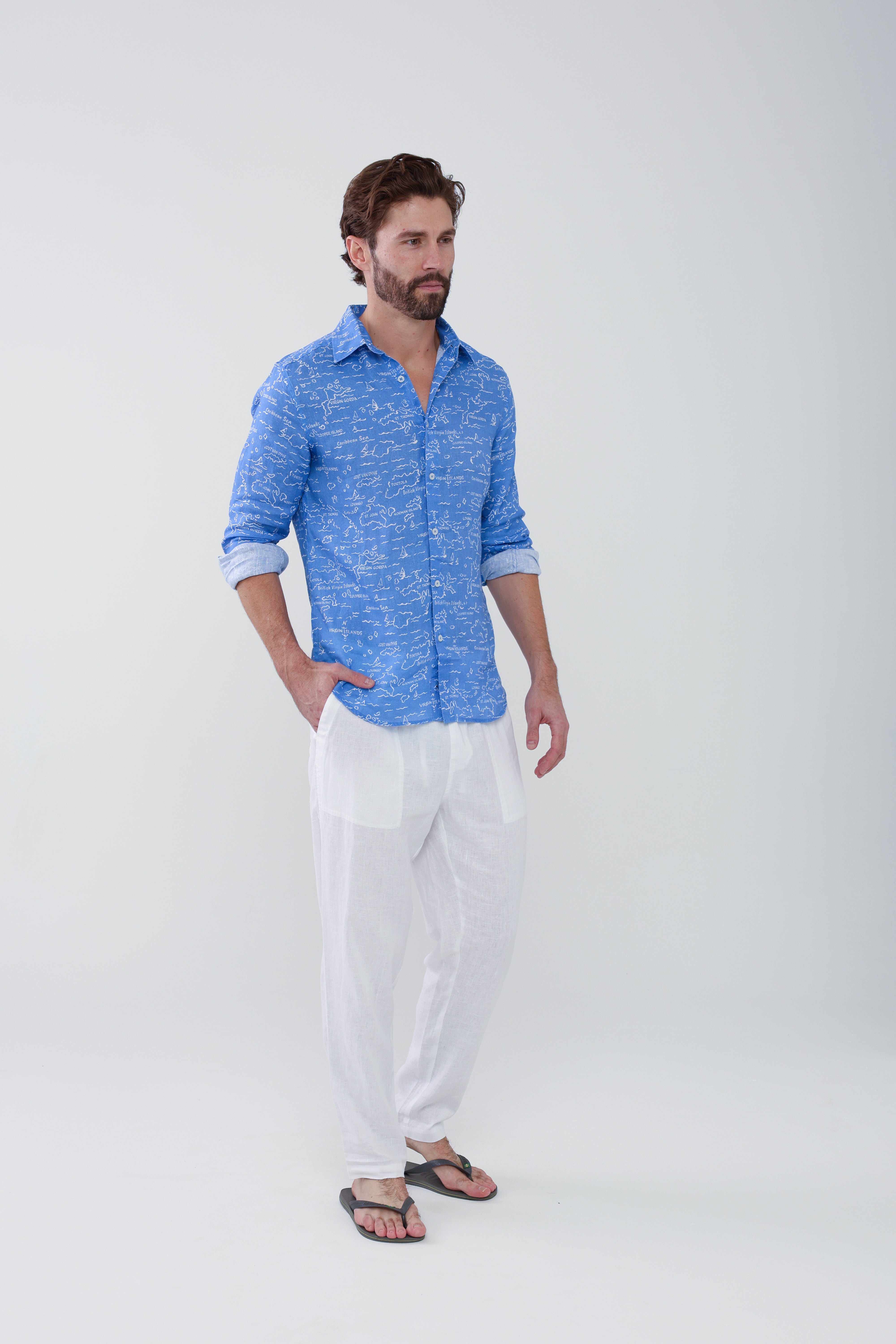 Our Jeremy shirt offers a more fitted and tapered shape than our classic linen style. Be cocktail party ready in this comfortable linen shirt.