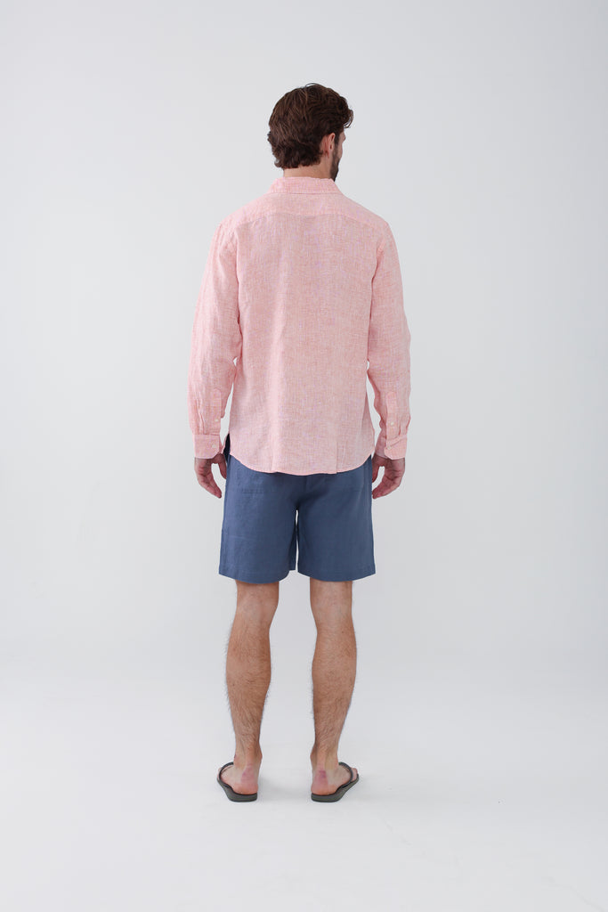 Lightweight Yarn Dye Linen Shirt - Sunset Orange